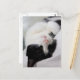 Postcard - Muy linda imagen de un pequeño gato de tomate durmiendo en la espalda y mostrando su linda cara de gato suave con los ojos de un gato somnoliento y la nariz de un gato muy dulce. Gato blanco y negro, durmiendo.