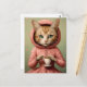Un gato con un abrigo rosado sostiene un café arte divertido generado por IA