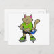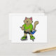 Postal Gato en hockey sobre hielo con palo de hockey