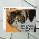 Ahora veamos Tu Cara Feliz, dice este gruñón gato persa exótico de pelo corto en esta postal fotográfica divertida y linda. Este gato gruñón seguramente pondrá una sonrisa en el rostro de todos sin importar la ocasión para deseos de cumpleaños o simplemente un Hola cotidiano. Este felino blanco, negro y marrón no tan feliz tiene Actitud "Cattitude". Todo el texto es personalizable y el "Feliz Cumpleaños" se puede cambiar con tu propio saludo. Esta es una fotografía original de JLW_PHOTOGRAPHY a pesar de la objeción del gato.