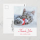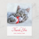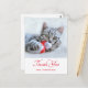 Tarjeta postal de agradecimiento de Navidad con una linda fotografía de Navidad de un gato atigrado gris mordiendo juguetonamente un sombrero rojo de Santa. Sus grandes patas esponjosas hacen que esta foto sea especialmente encantadora. Mensaje en el reverso que puedes personalizar para hacerlo tuyo, o eliminar el texto para escribir tu propio mensaje a mano.