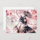 Postal Gato Geisha con Parasol y flores de cerezo