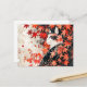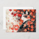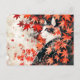 Postal Gato Geisha negro y blanco bajo hojas de arce rojo