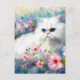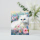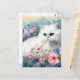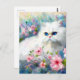 Postal Gato gitano blanco persa ojos azules en flores ros