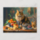 el gatito elegante es la pieza central de esta vida, rodeado de una variedad de frutas maduras y hermosas flores.