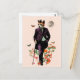 Un gato gracioso y elegante vestido con un traje de ciruela con un sombrero superior camina por las flores arte generado por IA