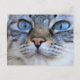 Este diseño presenta una imagen adorable de un gato mirando con determinación a la cámara. Tiene un hermoso abrigo gris de piel.