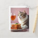 Postal Gato gris puro con lasagna y vidrio de vino
