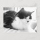 Postal Gato Kitty de pelo largo negro y blanco