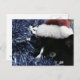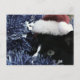 ¡Un gato blanco y negro con grandes ojos amarillos está listo para atacar a santa! O lo que sea que esté al otro lado del mejillón azul que está detrás. Con un sombrero de santa, ¡está listo para las vacaciones de los navidades!