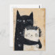 Un ilustracion reconfortante de un gato negro abrazando suavemente a un erizo. La obra de arte captura una escena caprichosa y afectuosa con detalles texturados y colores suaves.