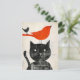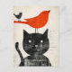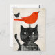 Postal Gato negro con pájaro rojo y crianza híbrida