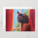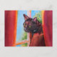 Postal Gato negro de chocolate con cortinas