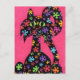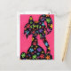 Este simpático gato negro se sienta sobre un fondo rosa intenso, mostrando en este diseño edificante sus detalladas marcas multicolores en forma de flor.