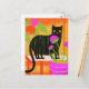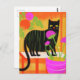 Postal Gato negro lindo con rayas verdes en plantas domés