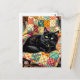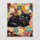 Una tarjeta dulce para un amigo o miembro de la familia que le diga a alguien que está pensando en ellos. Un lindo gato negro sobre una colcha en una mecedora.
