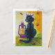 Postal Gato negro y lámpara de linterna roja