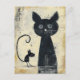 Un ilustracion intrigante de un gato negro que mira con miedo a un pequeño ratón negro. La obra de arte captura una escena caprichosa y lúdica con detalles texturados y colores contrastantes.