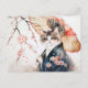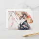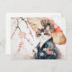 Postal Gato Noble de Geisha con paraguas de bambú en chin