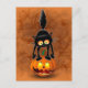 Caricatura divertida y asustada de Cat Halloween de pie sobre una traviesa calabaza de risa. Original ilustracion vectorial humorístico Copyright BluedarkArt TheChameleonArt.