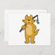 Postal Gato pescando con caña de pescar y pez