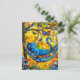 Postal Gato pintado en hamaca bajo árbol con mariposa
