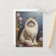 Postal Gato Ragdoll en Ilustracion Mascota fluffy en el j