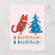 El gato rojo del tabby está decorando su árbol de Navidad. El siguiente texto dice O Tabbybaum. Tarjeta de descuento para sus mascotas sentados.