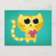 Postal Gato romántico lindo con corazón sonriente