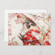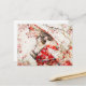 Postal Gato Serene Geisha en Kimono Rojo y Flor de cerezo