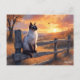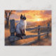 Postal gato siamés en una cerca de riel partido