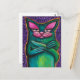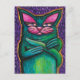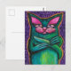 Postal Gato teal femenino en pastel al óleo sobre fondo p