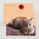 Tilki (Foxy) está sentado en una alfombra turca. Diseño con monograma de sello de cera rojo en el reverso. Fotografía y diseño gráfico digital por Bulgan Lumini (c)
