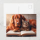 Postal Gato y perro leyendo un libro