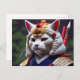 Imagen generada por IA de un gato samurai con armadura de hilo.