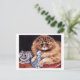 Postal de arte fino con un retrato animal de dos gatos de Louis Wain (1860-1939), un artista inglés. Un gato gris y un gatito naranja de pelo largo sentados al lado de un gato de porcelana con expresiones humorísticas.
