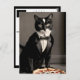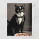 Postal gatos de esmoquín y pizza