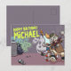 Dos divertidos gatos patinadores en una tarjeta de cumpleaños personalizada. Utilice "Personalizar esta plantilla" para cambiar el nombre y hacer un mensaje único y personalizado. Cuenta con un gato atigrado patinador con pantalones cortos y camiseta, y un gato naranja o rojizo con latas de spray dibujando grafitis en la pared detrás, ya pintada con grafitis de hierba gatera y calaveras de gato.