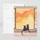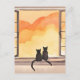Gatos en la ventana | ¡Diseño de silueta de color de agua de puesta de sol!