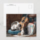 Postal de arte fino con la pintura del artista holandés-belga Henriëtte Ronner Knip (1821-1909), The Musicians (1876). Una familia de gatos tocando una guitarra y partiendo de una partitura.