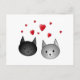 Un par de lindos gatos negros y grises con corazones de amor rojos.