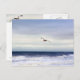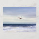 Una gaviota se cierne sobre las olas de espuma en una playa de Outer Banks.