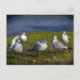 Esta postal contiene seis gaviotas grises y blancas reunidas en la hierba verde en un día soleado a orillas del lago Cayuga. El agua azul es muy atractiva. El lago Cayuga es el más largo de los glaciales lagos Finger de Nueva York. La ciudad de Ithaca se encuentra en el extremo sur.
