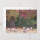 Postal Geese otoñal con hojas de otoño rojas y Naranjas