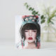 Hermosa mujer con mejillas y labios perforados, usando un tocado de Geisha o una pieza en la cabeza. Sus ojos de bonito son intensos, y sus labios rojos son tan pusilánimes y kissables. Imagen de Coral Lacey