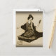 Postal Geisha japonesa Sepia vintage mirando con espejo