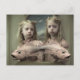Postal Gemelos con horror de peces rosados