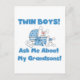 A las nuevas y orgullosas abuelas de los bebés gemelos les encantará este bonito diseño azul con dos conejillos en un lavabo azul y un texto azul que dice "¡Pregúntame por mis nietos!".