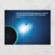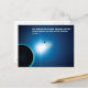 Una imagen estilizada en tonos azules y blanco de la Tierra y la Luna retroiluminada por el sol. Una traducción al inglés del Génesis 1:4 que decía "Dios vio que la luz era buena, y Dios dividió la luz de la oscuridad" también aparece en azul brillante y blanco.