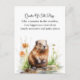 A soft watercolor illustration of a small marmot standing by the water’s edge, surrounded by wildflowers and fresh green grass. With warm brown fur and curious eyes, the scene captures a peaceful moment in nature, evoking calm, innocence, and the quiet beauty of the meadow.